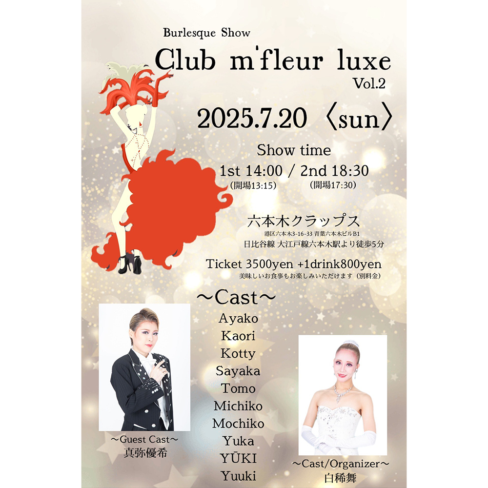 • Burlesque show《Club m’Fleur luxe〜エムフルールリュクス〜Vol.2》《1stステージ》【SOLD OUT!】