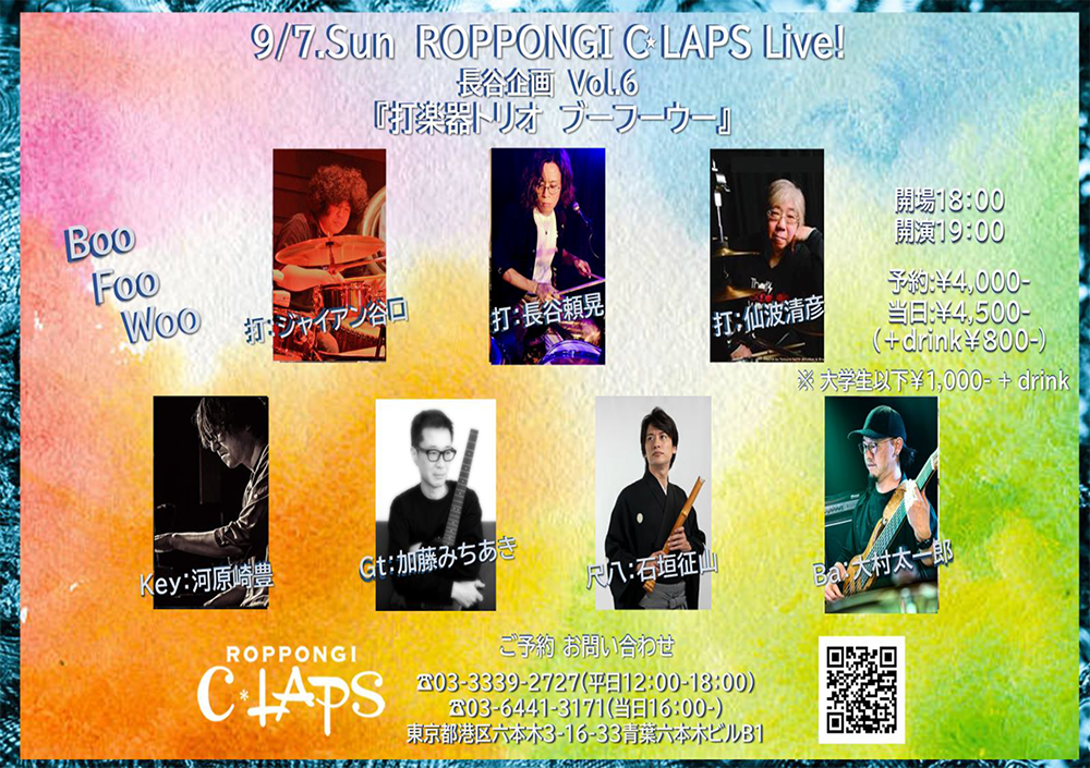 - 出 演ブーフーウー [打:仙波清彦、打:長谷頼晃、打:ジャイアン谷口]、尺八:石垣征山、Gt:加藤みちあき、Key:河原崎豊、Ba:大村太一郎