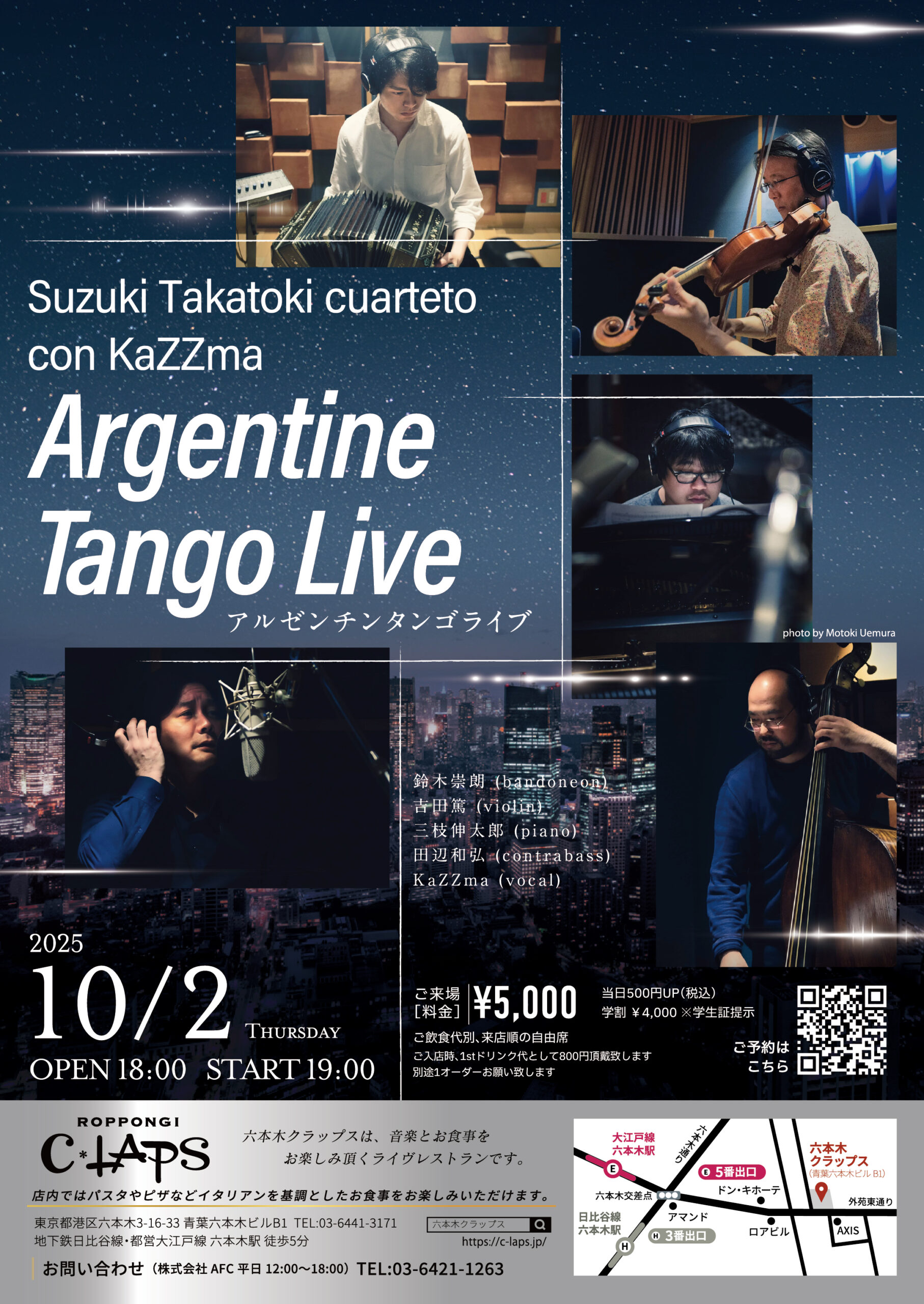 - 出 演鈴木崇朗(bandoneon)、吉田篤(vln)、三枝伸太郎(pf)、田辺和弘(b)、KaZZma(vo)