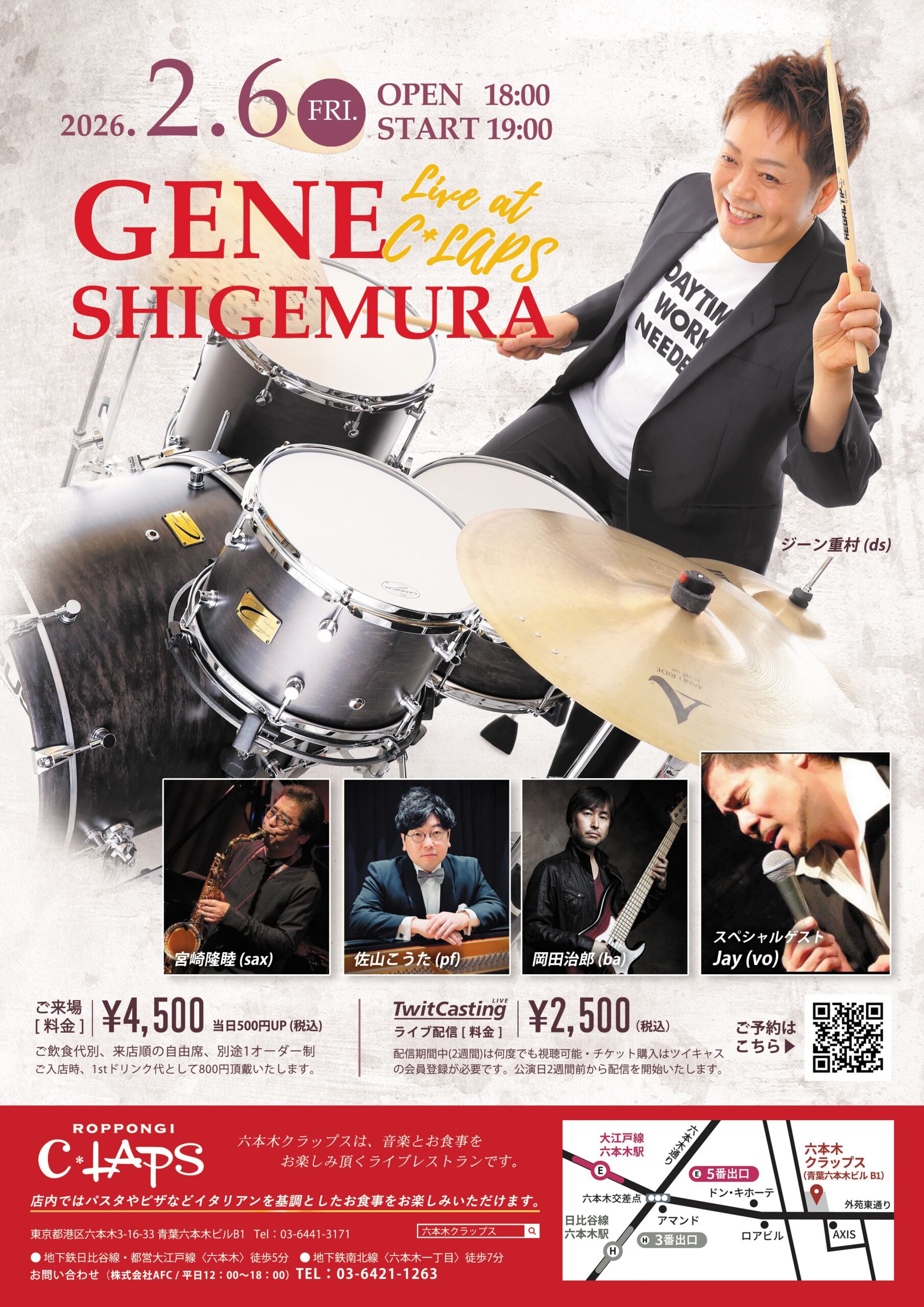 - 出 演ジーン重村(ds)、宮崎隆睦(sax)、佐山こうた(pf)、岡田治郎(b)