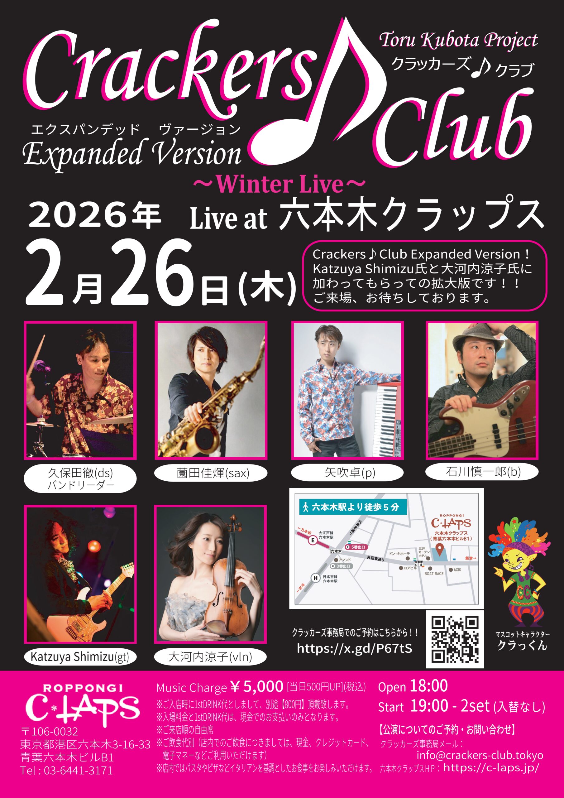 Crackers♪Club Expanded Version! Katzuya Shimizu氏と大河内涼子氏に加わってもらっての拡大版です!! ご来場、お待ちしております。