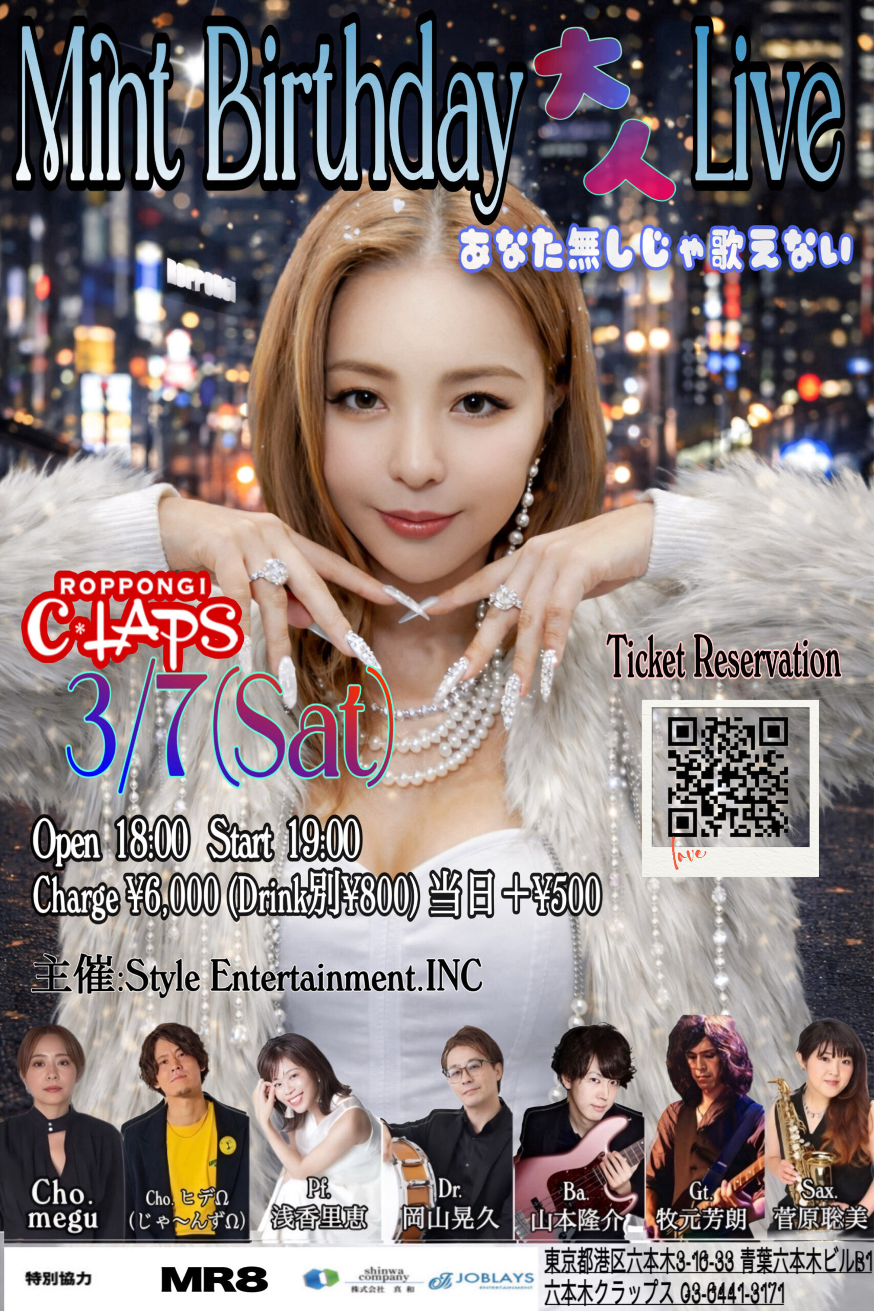 - 出 演Mint(vo)、megu(cho)、ヒデΩ(cho/じゃ〜んずΩ)、浅香里恵(pf)、岡山晃久(ds)、山本隆介(b)、牧元芳朗(g)、菅原聡美(sax)